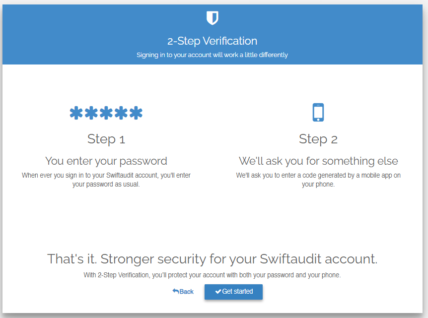 The next screen explains how 2-Step Verification works. Click the Get Started button to begin the activation process.